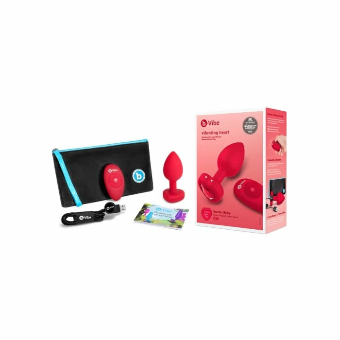 Looking to add some extra romance to your backdoor exploration? Look no further then this super powerful, Heart Shaped Remote-Control Plug from b-Vibe. Let your booty bling and vibe with 15 different vibration patterns and 6 escalating intensities. Made with smooth body-safe silicone and a wide tapered jewel base, this plug is going to be comfortable, with the ideal shape for safe insertion and removal. Includes a USB charge cable and works for up to 1.5 hours consecutively. You can use the Vibrating Heart Plug with or without the wireless remote control. Each motor has 6 intensity levels and 15 patterns. The remote works up to 30 feet away. Want to take it on the road? The vibrating heart plug arrives in a convenient, discreet travel bag. To avoid any uncomfortable vibration “accidents,” simply activate the travel lock.