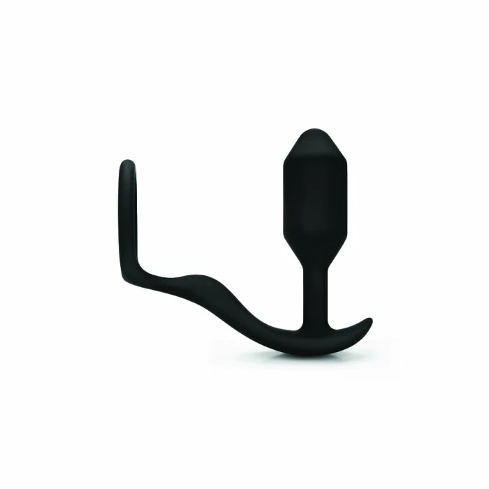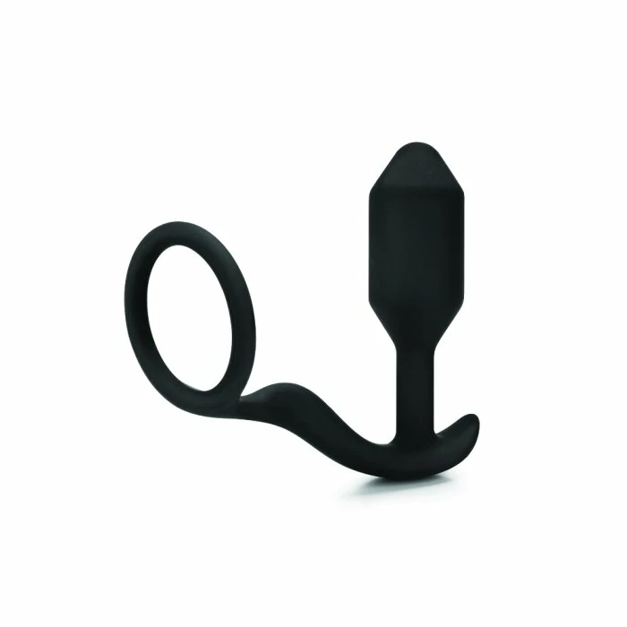 Snug & Tug builds off the popular B-Vibe Snug Plug Collection, which provides a weighted butt plug with a sense of fullness. Snug & Tug incorporates a genital ring, which supports enhanced stimulation to multiple erogenous zones as the ring produces longer, stronger erections. The weighted internal plug simultaneously stimulates the anal canal and prostate. The combination of delayed climax from the ring, with intensified sensation from internal/prostate stimulation, is mind blowingly perfect for partner sex or to enjoy discreetly for stimulating extended wear.