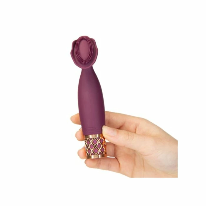 Can you keep a Secret? You might not want to with the new Passion from Pillow Talk® Secrets! Pillow Talk® Secrets’ petite external vibrator allows you to immerse yourself in a world of sensations! The ultra-soft bristles on the flower-shaped silicone head give you a stimulating and satisfying feeling. Each little nub carries the powerful vibrations from the PowerBullet® motor right to the erogenous area of your choosing for a ticking, teasing, but mostly arousing feeling. The middle of the flexible head is soft and smooth, and the flower shaped outer edge lets your play with alluring curves. A rose gold lattice-wrapped base provides an elegant grip, but the soft, high-grade silicone finish gives you the most comfortable, silky-smooth touch. The Passion’s compact design gives you the accuracy you need, while the vibrations are directed towards the head, not the handle, so your fingers won’t tire out before you do.