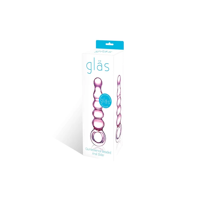 The Glas Quintessence dildo is deliciously textured and incredibly versatile. This piece features a graduated, beaded design with a slightly bulbous tip, allowing you to slowly work your way up to increasing amounts of girth. It also sports a large, easy to grip ring at the base for maximum maneuverability and comfort.