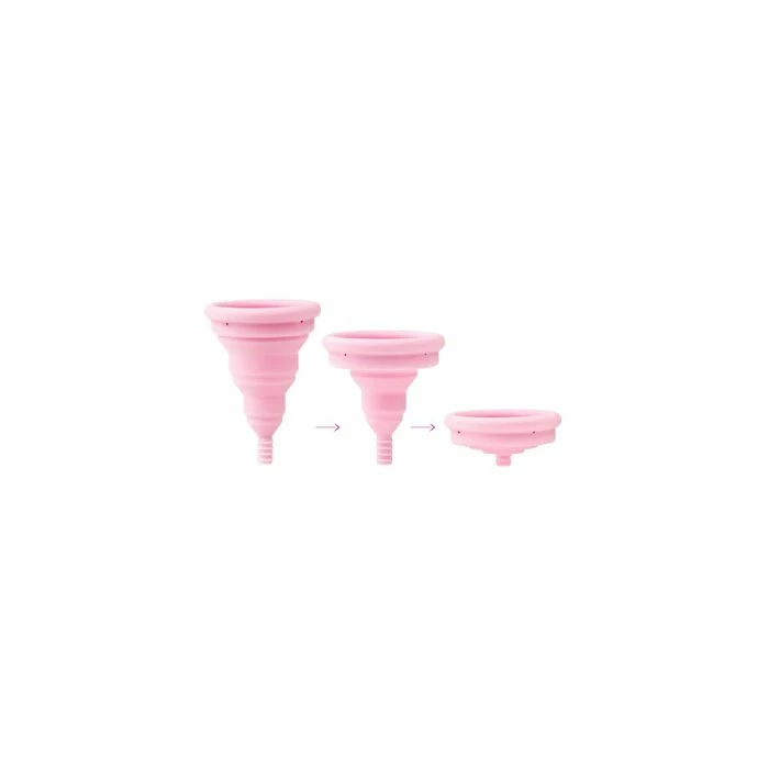 Smoosh the lid of the cup together, and then fold the cup to make it compact. Insert the cup into the vaginal canal, while continuing to hold the edges together. Using a little lube to help it slide in makes this much more comfortable!