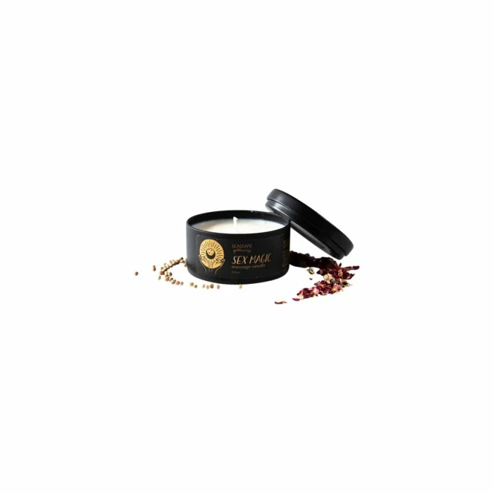 seagrape’s massage candles are formulated with body safe & moisturizing ingredients. You can use them as a room candle, to infuse your space with warm ambiance and beautiful scent, and also use the melted soy wax, shea butter, and oils as a warm sensual massage oil. Ready to open the door to being your own best lover? This aphrodisiac massage candle is here to help remind you to turn self-care into a love affair through the senses. With notes of rose, coffee, and vetiver you’re sure to swoon your way right into a very good night.