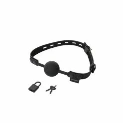 The Sportsheets Sincerely Ball Gag features lace-patterned faux leather and a silicone ball gag for a luxurious spin on a favorite piece of play gear. Very effectively restraining the wearer (orally, at least!) the Locking Lace Silicone Ball Gag can be locked into place using an included padlock and key (two keys are included).