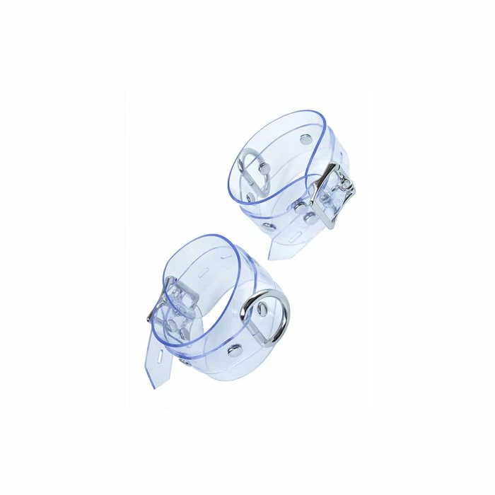 Adorn your wrists with these other-worldly restraints! These cuffs are constructed from of clear vinyl so that you can still see every inch of your body during playtime. They feature functional nickel-plated D-rings as points of attachment, and a locking buckle. Light and inconspicuous, these spacey restraints are perfect in the dungeon, or during a fun night out.